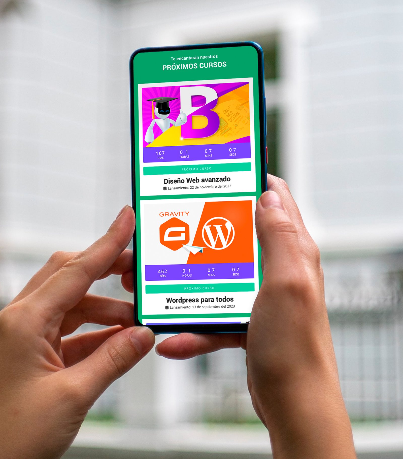 - Le permite crear una página individual para sus “Próximos curso”.
